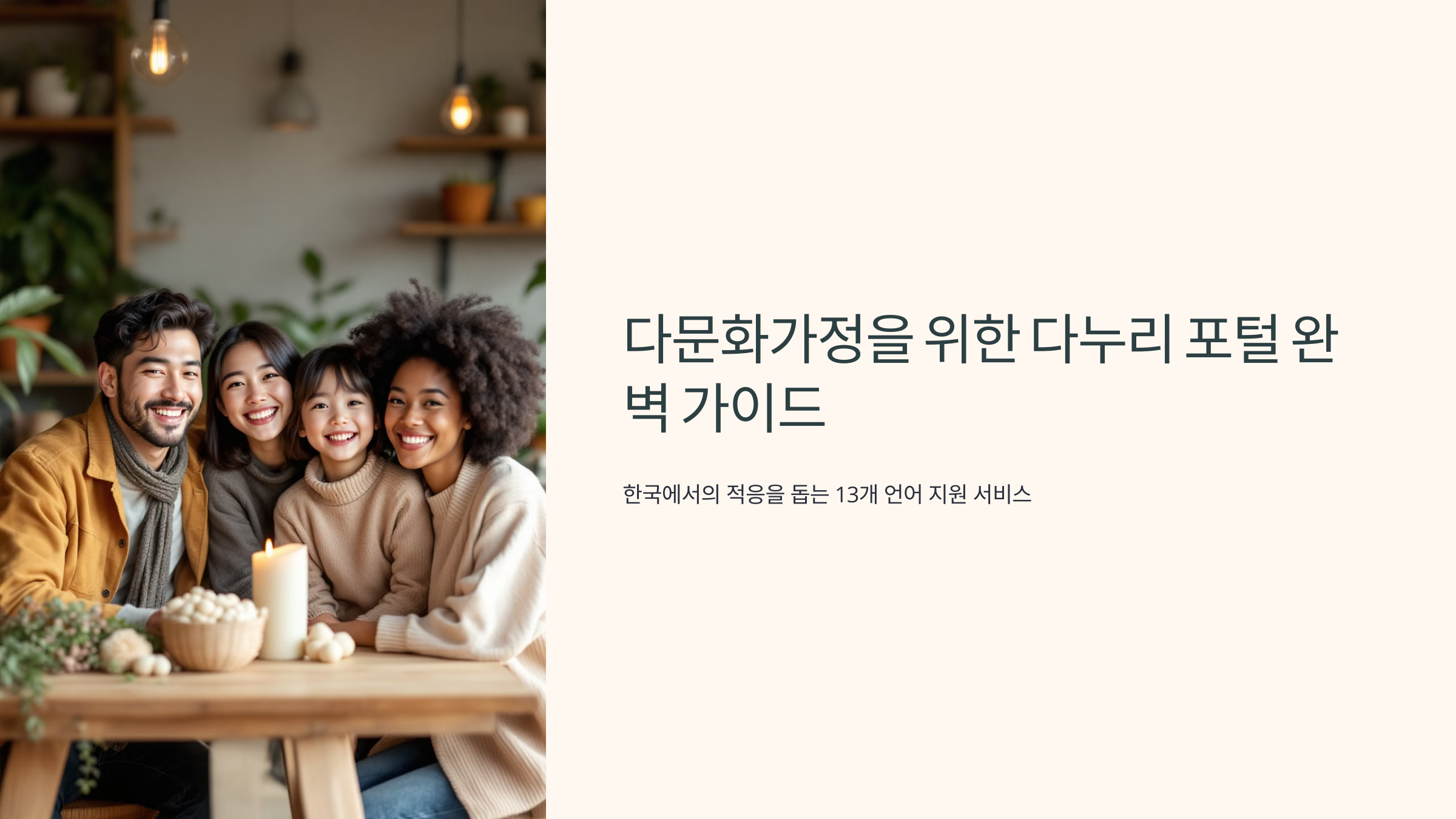 여러분, 한국에서 살아가는 다문화가정이 얼마나 될까요? 통계에 따르면 매년 증가하고 있는 추세인데요. 이런 다문화가정이 한국 사회에 잘 적응하고 행복하게 살 수 있도록 돕는 든든한 지원군이 있습니다. 바로 '다누리 포털'이에요!