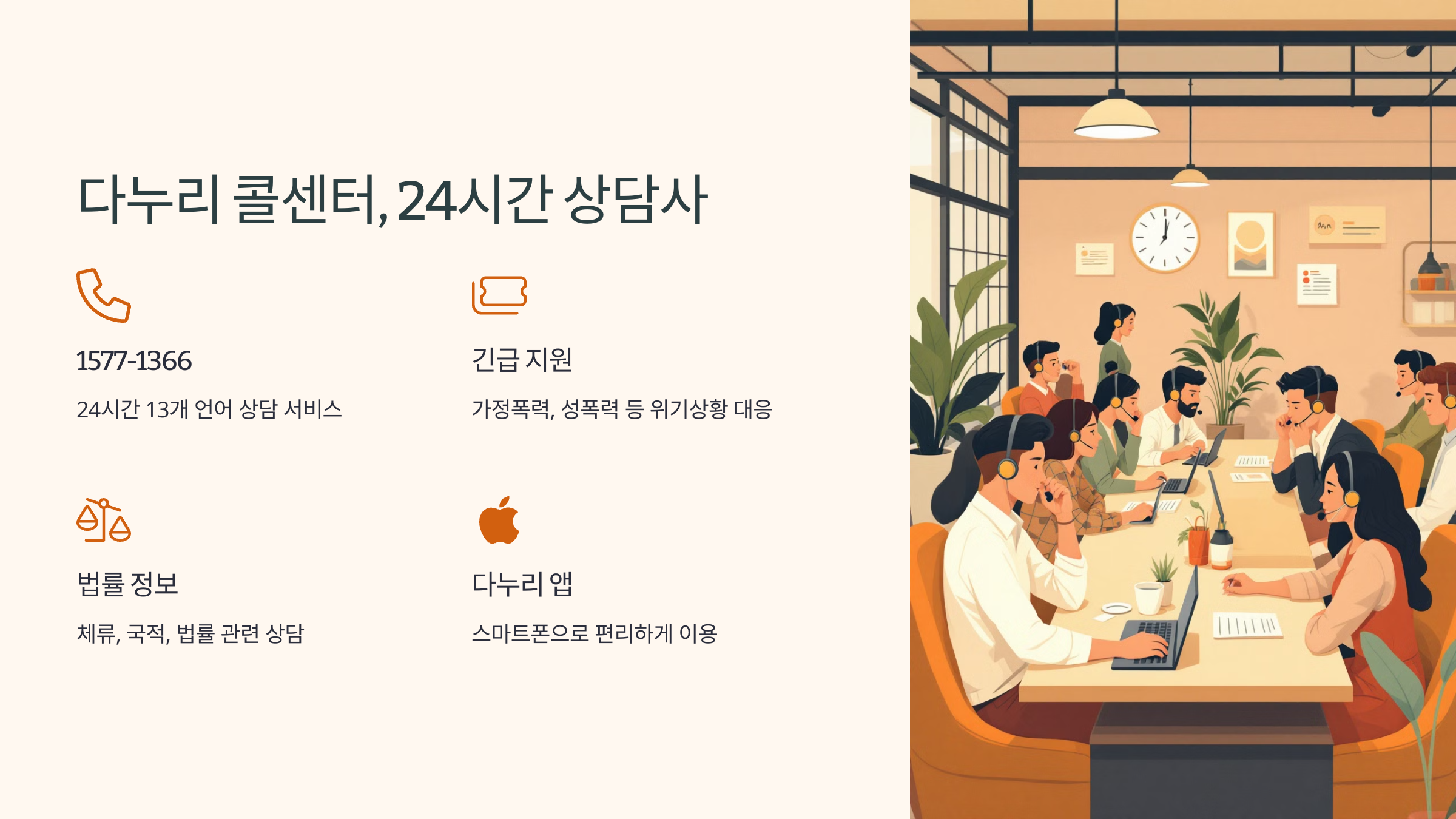 - 다누리 콜센터 1577-1366, 당신 곁의 24시간 상담사